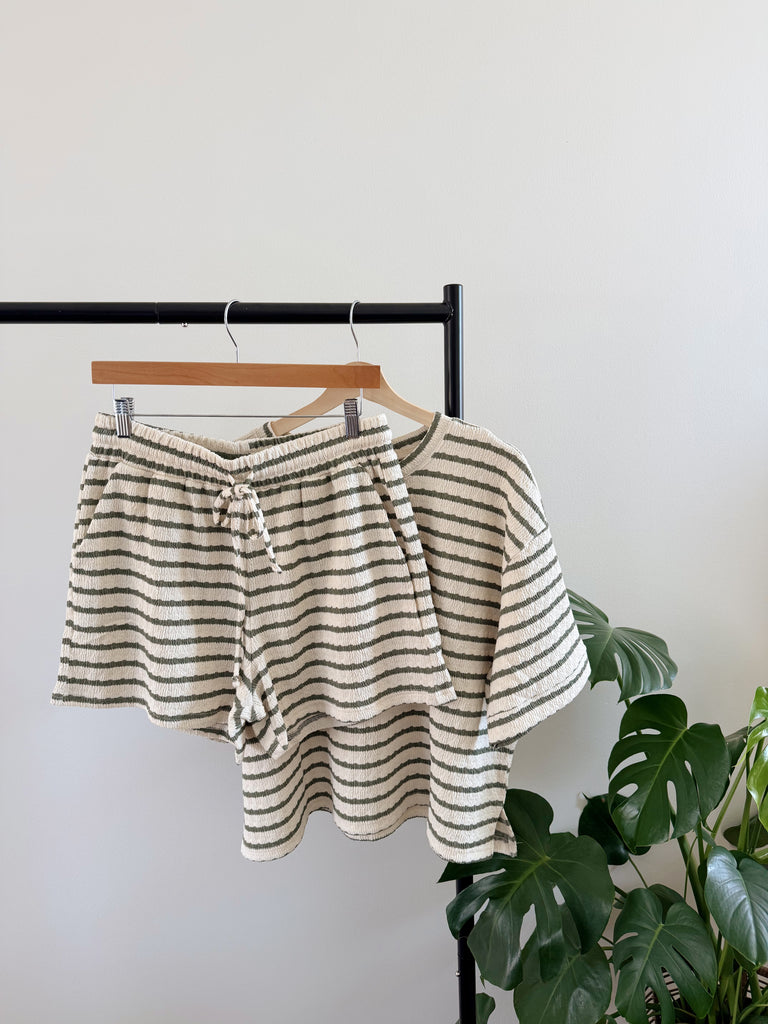Experience comfort and style with our Everyday Matching Set in Olive. Made from crinkle soft cotton, this relaxed outfit is perfect for spring and summer days. Its cozy texture makes it so enjoyable, you'll find yourself reaching for it again and again.