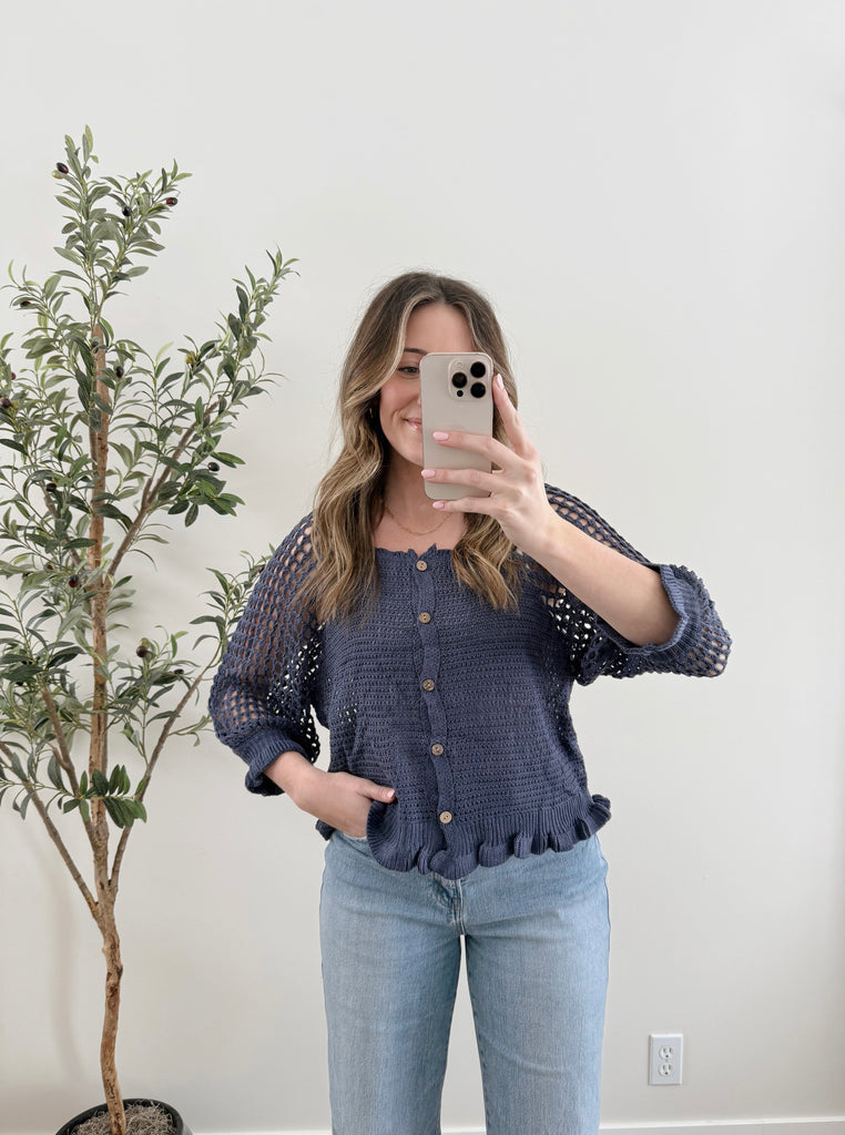 Elevate your wardrobe with the Rosa Crochet Knit Top. Its charming ruffle and crochet design offer a delightful balance of style and comfort, perfect for transitioning from winter to spring. You'll love how it brightens up your outfits while keeping you cozy and chic.